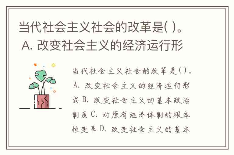 当代社会主义社会的改革是( )。 A. 改变社会主义的经济运行形式 B. 改变社会主义的基本政治制度 C. 对原有经济体制的根本性变革 D. 改变社会主义的基本经济制度