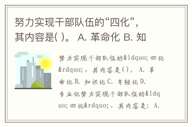 努力实现干部队伍的“四化”,其内容是( )。 A. 革命化 B. 知识化 C. 年轻化 D. 专业化