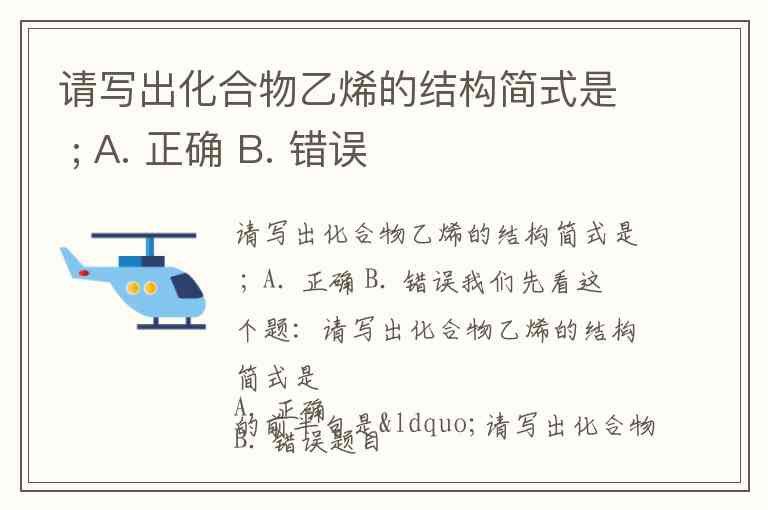 题目的前半句是“请写出化合物乙烯的结构简式是”,但选项却是“正确/错误”,中间没有具体的化学式。