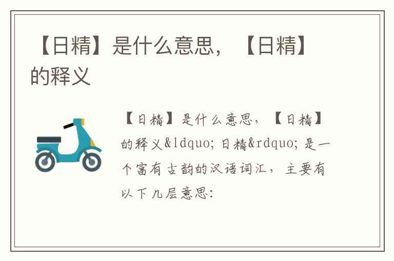 “日精”是一个富有古韵的汉语词汇,主要有以下几层意思: