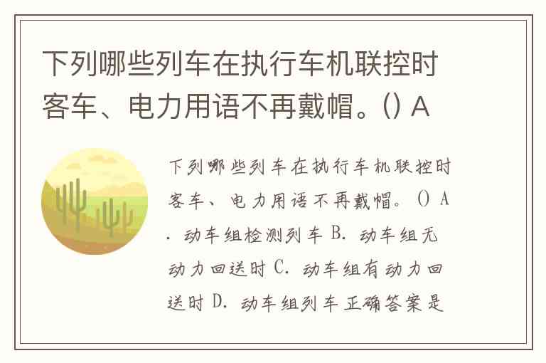 C. 动车组有动力回送时 ✅ 与正常运行的动车组列车一样,执行联控时不再使用“客车”、“电力”用语-2-3。
