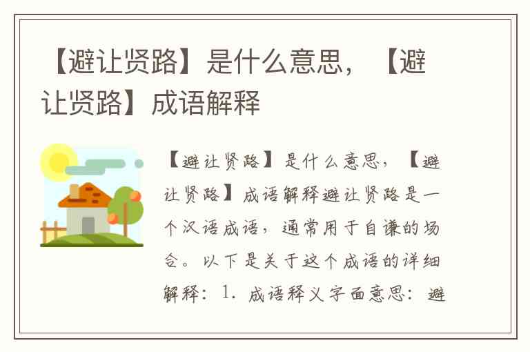 【避让贤路】是什么意思,【避让贤路】成语解释