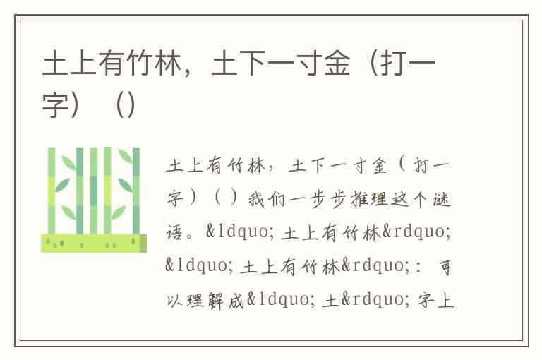土上有竹林,土下一寸金(打一字)()