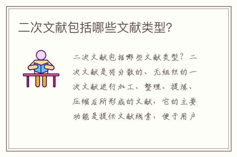 简单来说,二次文献是关于文献的文献,它不改变一次文献的内容,只改变其呈现形式。