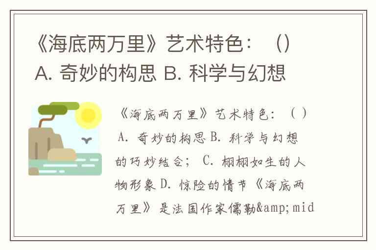 《海底两万里》艺术特色:() A. 奇妙的构思 B. 科学与幻想的巧妙结合; C. 栩栩如生的人物形象 D. 惊险的情节