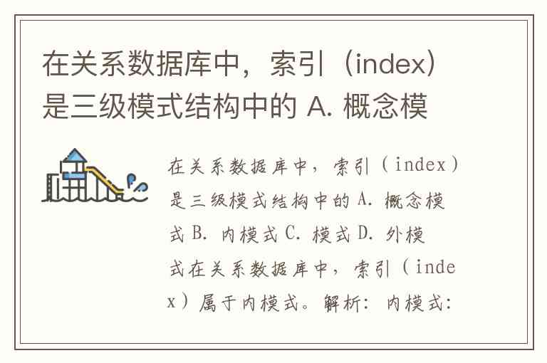 在关系数据库中,索引(index)是三级模式结构中的 A. 概念模式 B. 内模式 C. 模式 D. 外模式