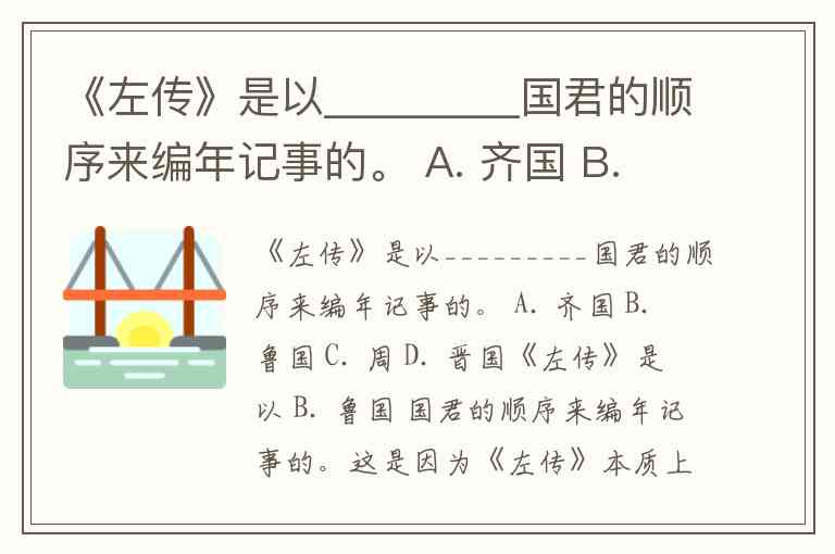 《左传》是以 B. 鲁国 国君的顺序来编年记事的。这是因为《左传》本质上是为了解释另一部史书《春秋》而作,而《春秋》正是鲁国的国史-1-5。