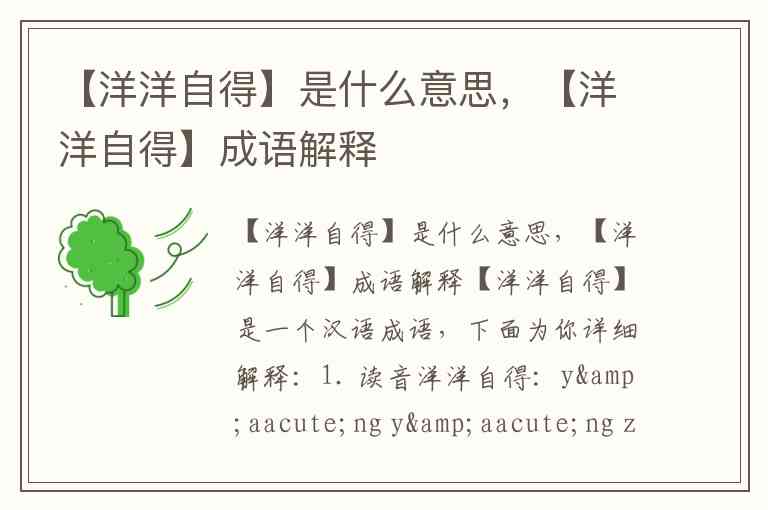 字面意思:“洋洋”指得意的样子,也写作“扬扬”;“自得”指自己感到得意或舒适。