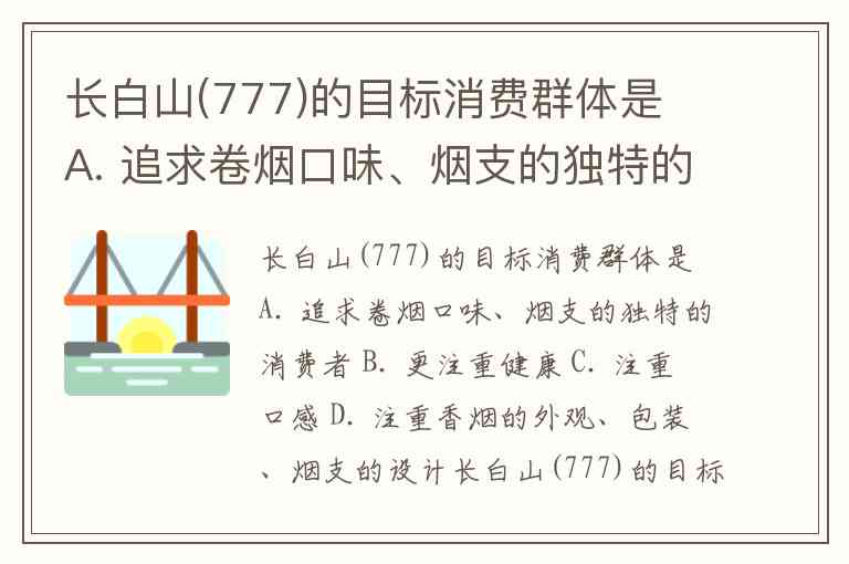 长白山(777)的目标消费群体特征是多元的,它并非只满足单一需求,而是精准地切中了几个关键点的交集。综合来看,其目标消费者最符合选项 A. 追求卷烟口味、烟支的独特的消费者,但同时也强烈地具备注重健康和注重口感的特点。
