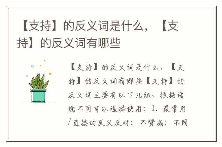 【支持】的反义词主要有以下几组,根据语境不同可以选择使用: