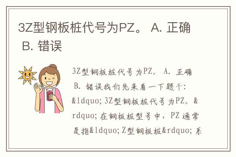 “3Z型钢板桩代号为PZ” —— 这里面“3Z”可能是指一种具体型号(比如Z型截面中的某一型号),但说其“代号为PZ”是不准确的。实际上,所有Z型钢板桩在某一标准中常用“PZ”+数字表示,而不是“3Z”就“代号为PZ”。