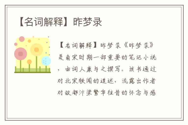 【名词解释】昨梦录