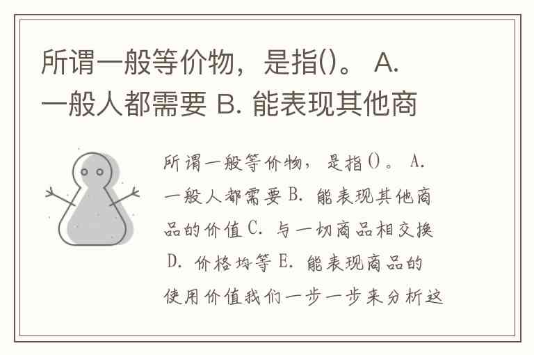 (4)并不是“一般人都需要” —— 从经济学术语上看,“一般等价物”是历史上某个阶段充当交换媒介的商品,不是单纯从使用价值角度说“一般人都需要”。