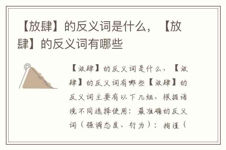 【放肆】的反义词主要有以下几组,根据语境不同选择使用:
