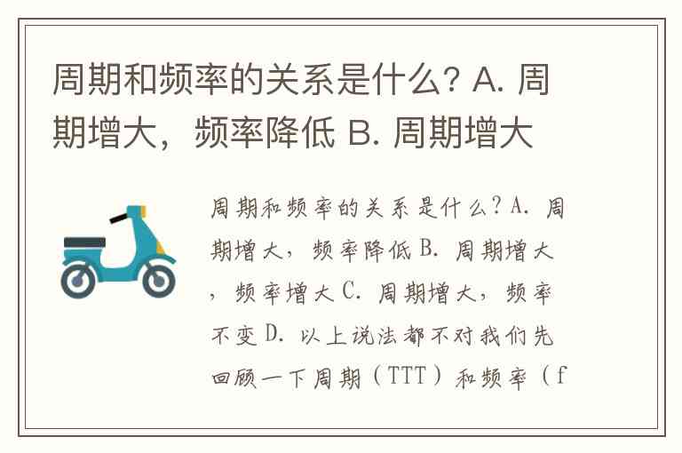 周期和频率的关系是什么? A. 周期增大,频率降低 B. 周期增大,频率增大 C. 周期增大,频率不变 D. 以上说法都不对