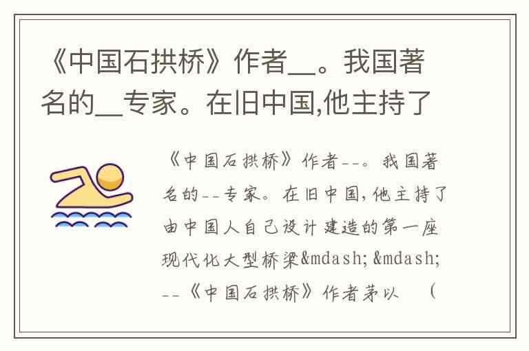 《中国石拱桥》作者茅以昇(也常写作茅以升)-1-4。我国著名的桥梁工程专家-2-5。在旧中国,他主持了由中国人自己设计建造的第一座现代化大型桥梁——钱塘江大桥-2-3-8。