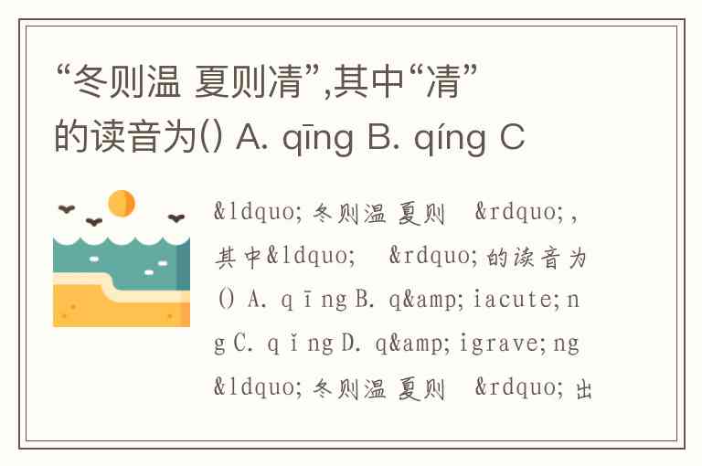 “冬则温 夏则凊”,其中“凊”的读音为() A. qīng B. qíng C. qǐng D. qìng