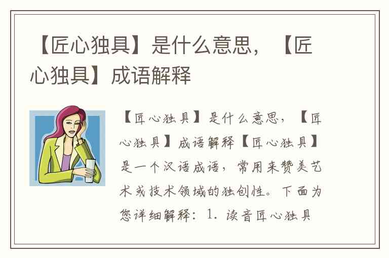 【匠心独具】是一个汉语成语,常用来赞美艺术或技术领域的独创性。下面为您详细解释: