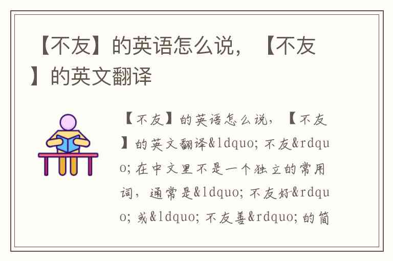 “不友”在中文里不是一个独立的常用词,通常是“不友好”或“不友善”的简写。根据具体的语境,翻译成英语时有以下几种常见的表达: