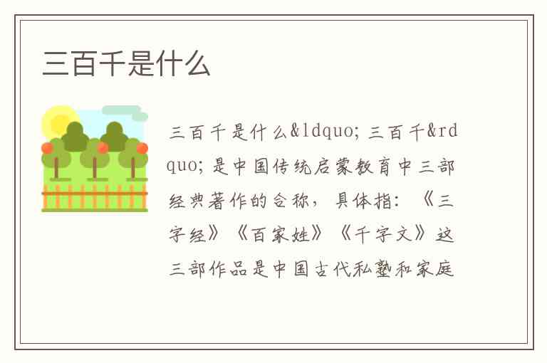 “三百千”是中国传统启蒙教育中三部经典著作的合称,具体指: