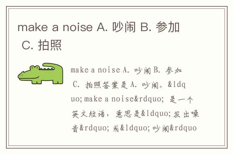 make a noise A. 吵闹 B. 参加 C. 拍照