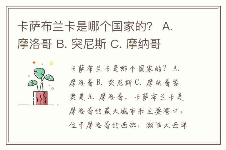 卡萨布兰卡是哪个国家的? A. 摩洛哥 B. 突尼斯 C. 摩纳哥