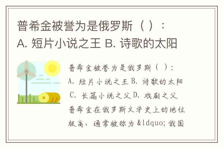 普希金被誉为是俄罗斯( ): A. 短片小说之王 B. 诗歌的太阳 C. 长篇小说之父 D. 戏剧之父