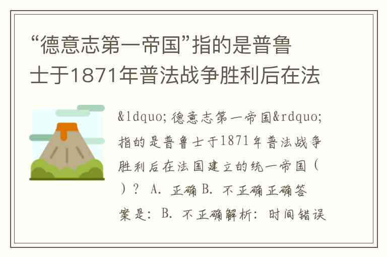 “德意志第一帝国”指的是普鲁士于1871年普法战争胜利后在法国建立的统一帝国()? A. 正确 B. 不正确
