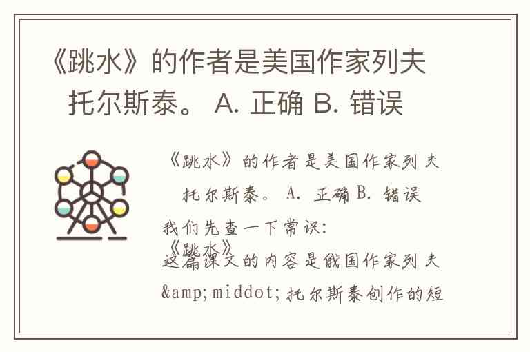 我们先查一下常识:《跳水》这篇课文的内容是俄国作家列夫·托尔斯泰创作的短篇小说,但题目中写“美国作家列夫·托尔斯泰”显然是错误的,因为列夫·托尔斯泰是俄国作家,不是美国人。