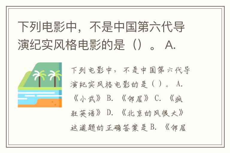 因此,虽然《邻居》也是一部极具纪实风格的经典之作,但它出自第四代导演之手,并非题目所问的“中国第六代导演”的作品。