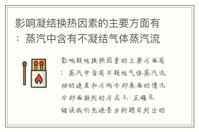 影响凝结换热因素的主要方面有:蒸汽中含有不凝结气体蒸汽流动的速度和方向冷却表面的情况冷却面排列的方式 A. 正确 B. 错误