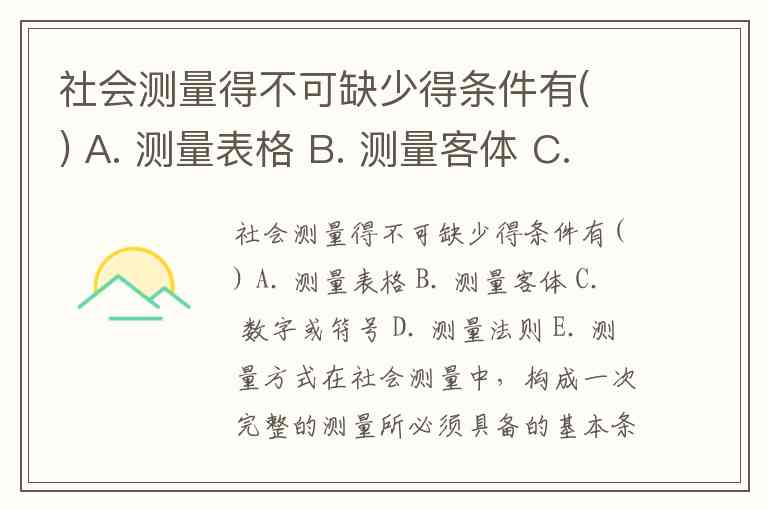 社会测量得不可缺少得条件有( ) A. 测量表格 B. 测量客体 C. 数字或符号 D. 测量法则 E. 测量方式