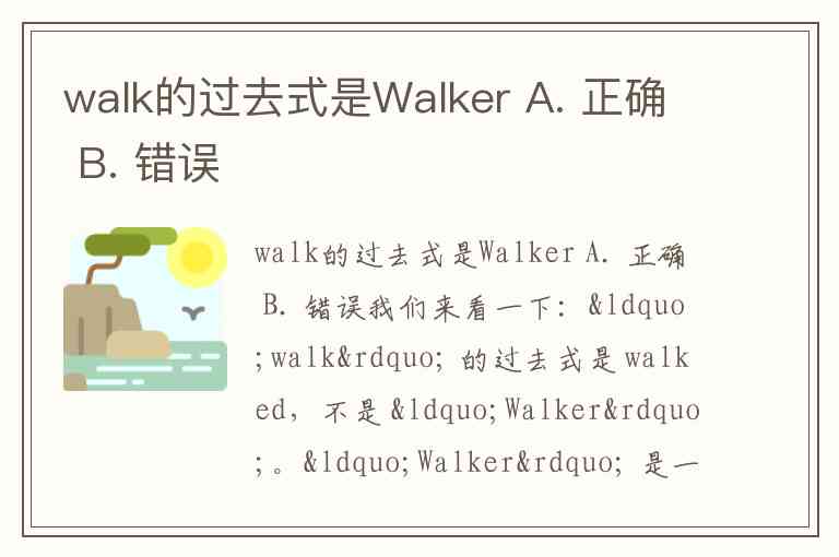 walk的过去式是Walker A. 正确 B. 错误