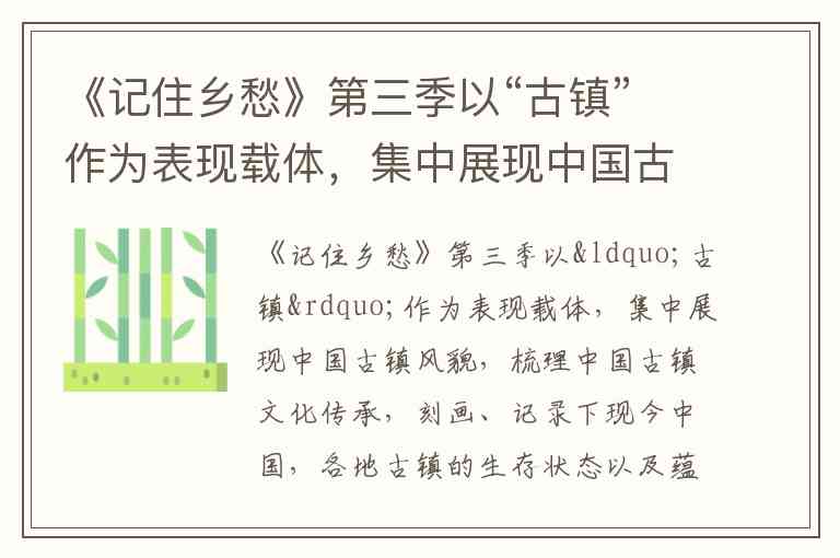 题干中《记住乡愁》第三季通过展现古镇风貌、梳理文化传承、讲述蕴含传统美德的故事,对观众进行美德教育,并激发古镇游子的骄傲之情。这主要体现了优秀传统文化(如谦让、勤劳、助人等美德)在当代依然能够影响人、教育人、激励人,即“优秀传统文化增强了人的精神力量”(C 选项)。