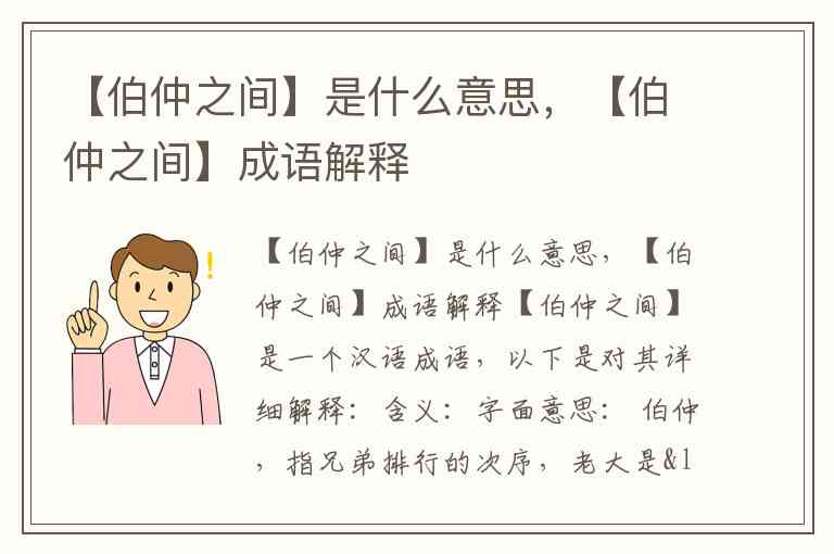 【伯仲之间】是一个汉语成语,以下是对其详细解释: