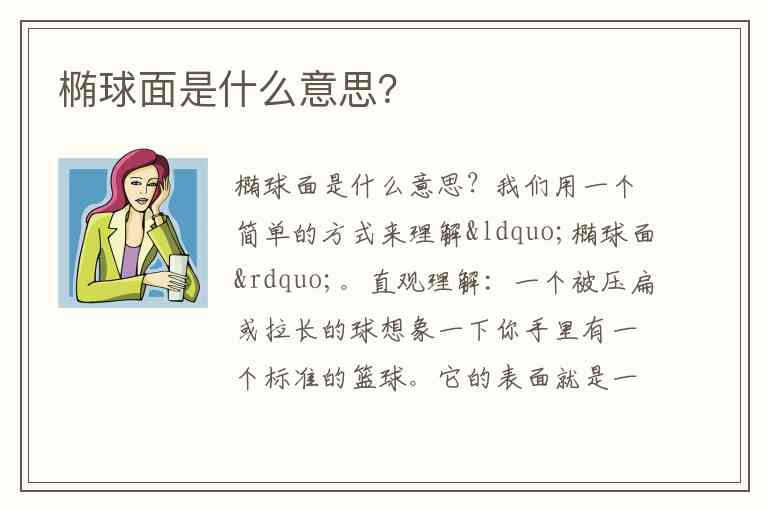 简单来说,椭球面就是球面在三维空间里被拉伸或压缩后的变形体。