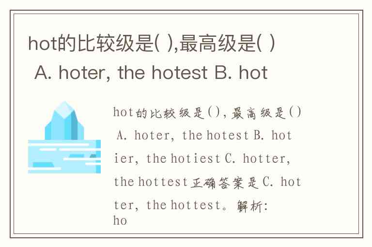hot的比较级是( ),最高级是( ) A. hoter, the hotest B. hotier, the hotiest C. hotter, the hottest