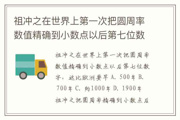 祖冲之在世界上第一次把圆周率数值精确到小数点以后第七位数字,这比欧洲要早 A. 500年 B. 700年 C. 约1000年 D. 1900年