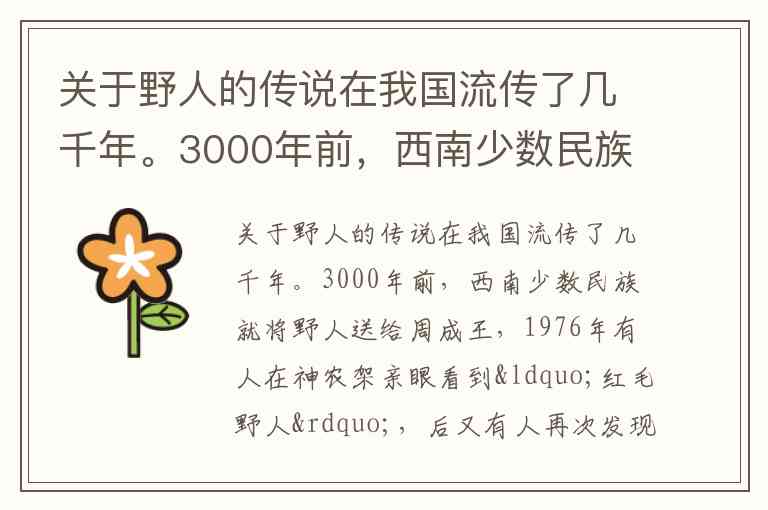 导游先说了流传几千年的野人传说;接着举了3000年前的事例;再举1976年有人看到的事例;还举了后来发现毛发粪便及野人窝的事例;最后从这些例子得出一个结论——这个“野人窝”的制造与使用者是介于人和高等灵长目动物之间的奇异动物或野人。