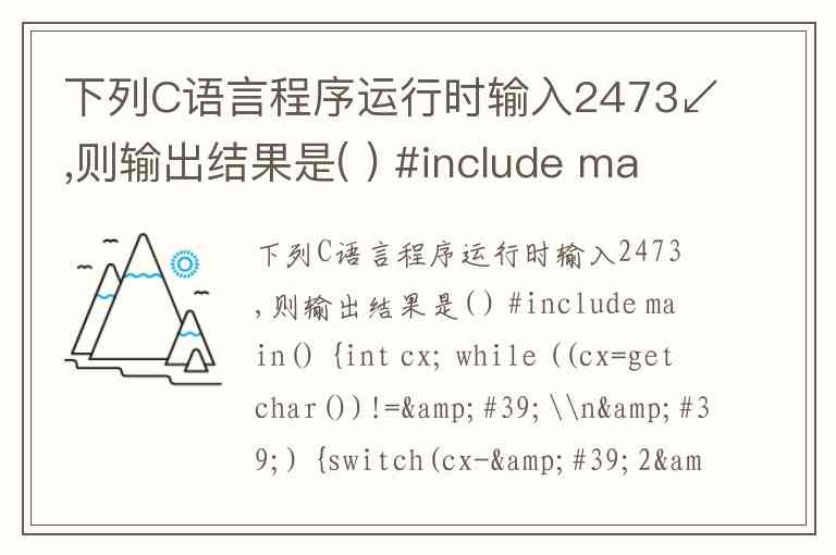 下列C语言程序运行时输入2473↙,则输出结果是( ) #include main() {int cx; while ((cx=getchar())!='\n') {switch(cx-'2') {case 0: case 1:putchar(cx+4); case 2:putchar(cx+4); break; case 3:putchar(cx+3); default:putchar(cx+2); } } } A. 668966 B. 668977 C. 6677877 D. 668876