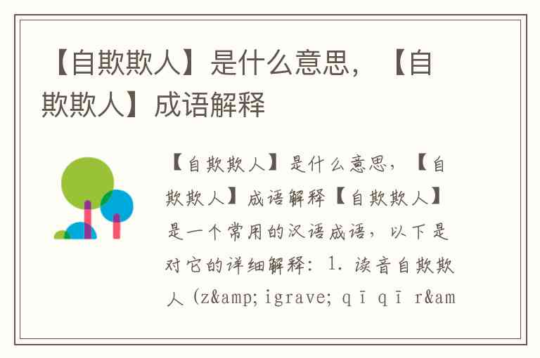 【自欺欺人】是一个常用的汉语成语,以下是对它的详细解释: