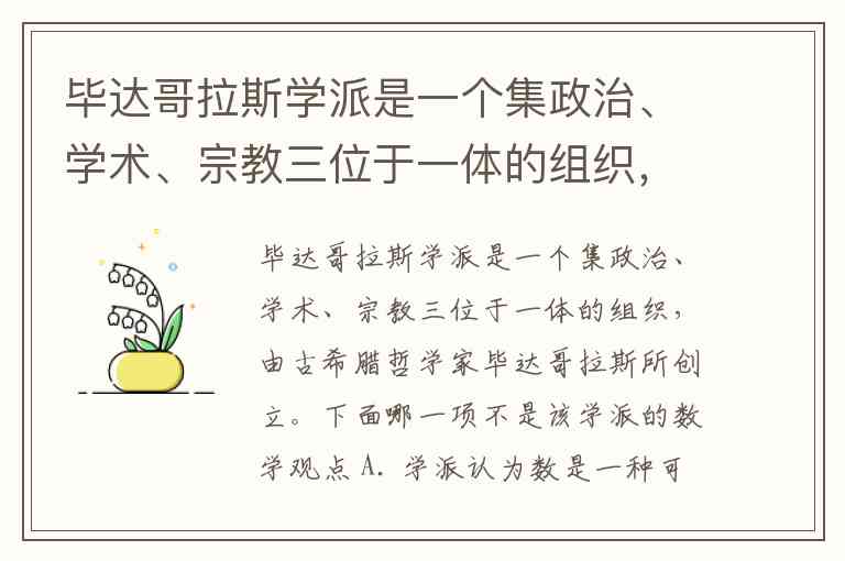 “飞矢不动”是爱利亚学派的芝诺提出的著名悖论,而非毕达哥拉斯学派的观点。以下是关于这四个选项的辨析,结合了搜索结果中的信息:
