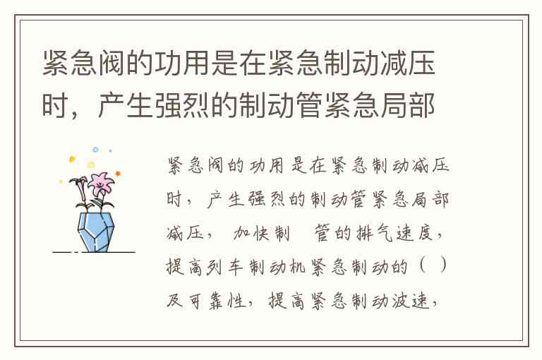 “紧急阀的功用是在紧急制动减压时,产生强烈的制动管紧急局部减压,加快制动管的排气速度,提高列车制动机紧急制动的 灵敏性 及可靠性,提高紧急制动波速,改善紧急制动性能。”