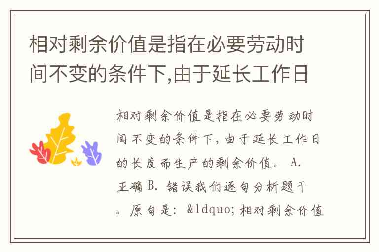 “相对剩余价值是指在必要劳动时间不变的条件下,由于延长工作日的长度而生产的剩余价值。”