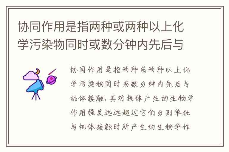 题干给出了“协同作用”的定义,说它是两种或以上化学污染物同时或数分钟内先后接触机体,产生的生物学作用强度远远超过它们分别单独作用的总和。