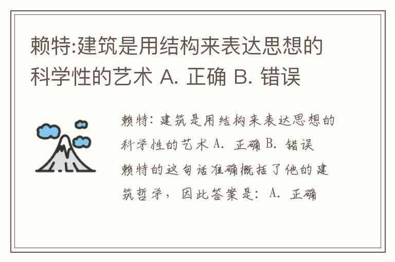 赖特:建筑是用结构来表达思想的科学性的艺术 A. 正确 B. 错误