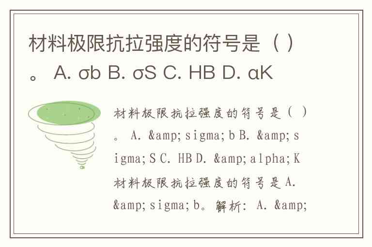 材料极限抗拉强度的符号是( )。 A. σb B. σS C. HB D. αK