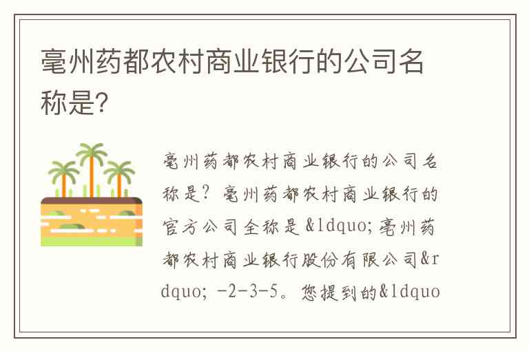 毫州药都农村商业银行的公司名称是?