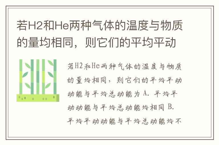 若H2和He两种气体的温度与物质的量均相同,则它们的平均平动动能与平均总动能为 A. 平均平动动能与平均总动能均相同 B. 平均平动动能与平均总动能均不相同 C. 平均平动动能相同,平均总动能不相同 D. 平均平动动能不相同,平均总动能相同