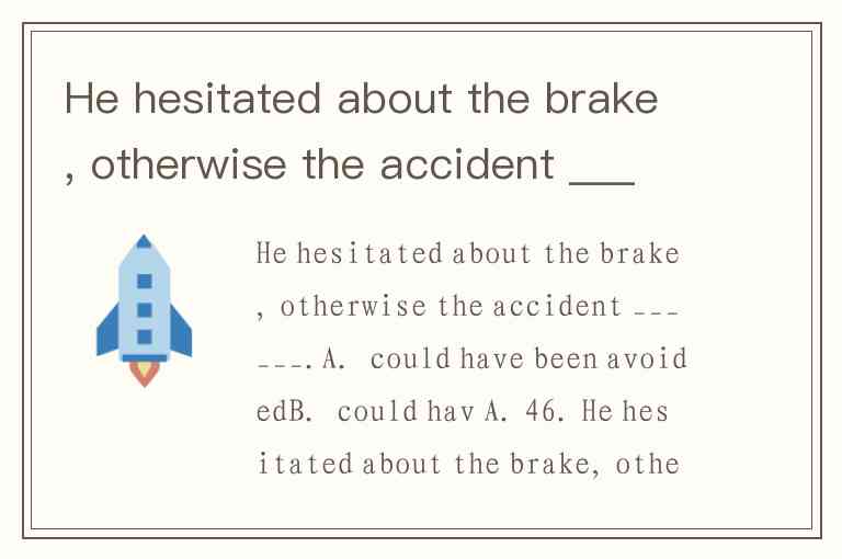 He hesitated about the brake, otherwise the accident ______.A.could have been avoidedB.could hav A. 46. He hesitated about the brake, otherwise the accident ______. A.could have been avoided B. could have avoided C. would have avoid D. should have been avoided